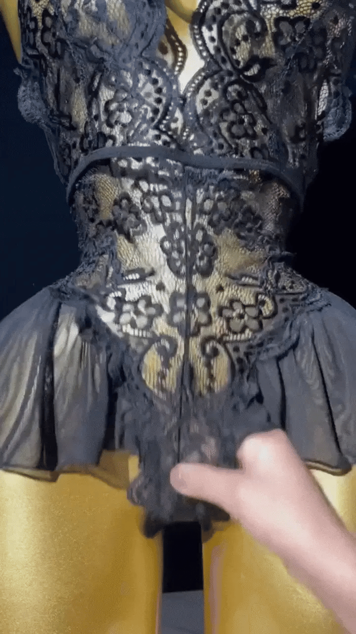 Su corte elegante acentúa la silueta femenina, ofreciendo un equilibrio entre glamour y ligereza. Perfecto para ocasiones íntimas y momentos especiales.